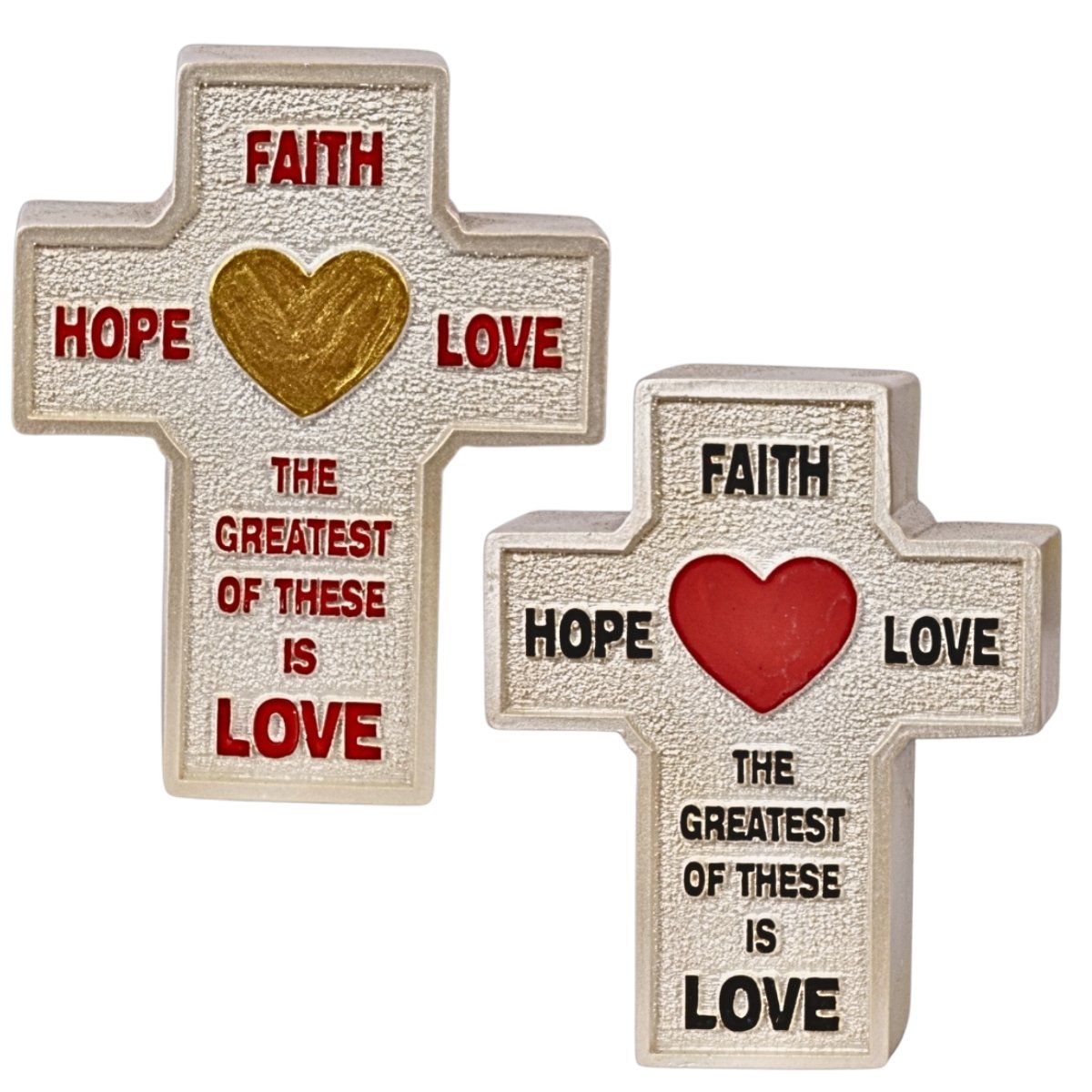 Faith Hope Love The greatest of these is love Cross – 3″ Table Top | Handcrafted Christian Religious Articles