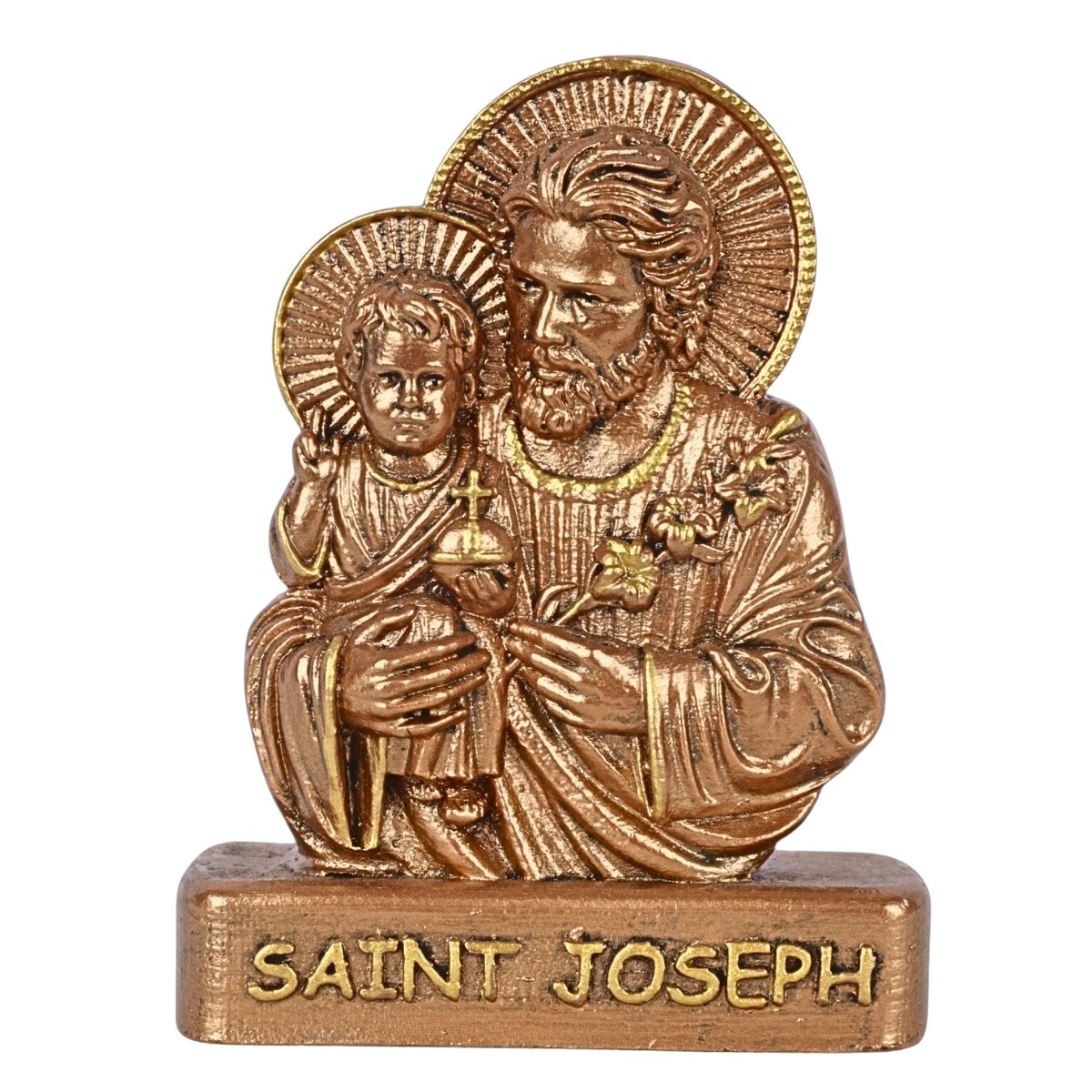 St. Joseph – 3.5″ Table Top is a finely crafted Christian religious article made of premium polyresin. Designed with care and hand-painted for a unique touch, this table top blends devotion and artistry. Suitable for churches, home altars, religious gift stores, or resellers looking for authentic and inspirational decor. Every piece reflects spiritual significance and craftsmanship. Customizable for bulk orders.