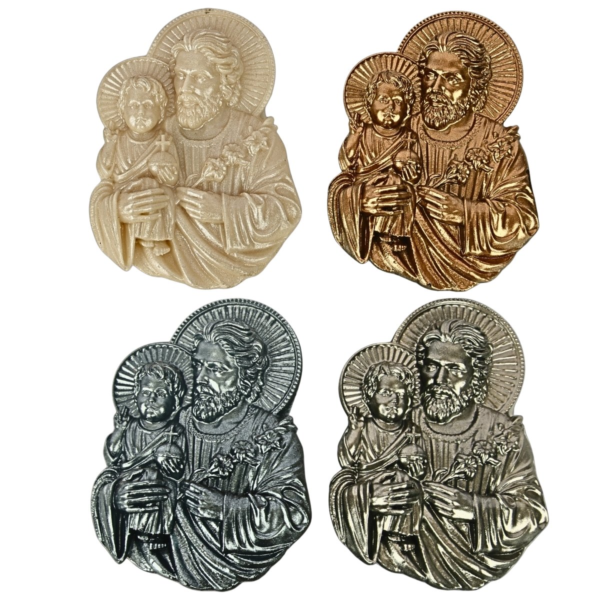 St. Joseph with Baby Jesus – 2.5″ Magnet is a finely crafted Christian religious article made of premium polyresin. Designed with care and hand-painted for a unique touch, this magnet blends devotion and artistry. Suitable for churches, home altars, religious gift stores, or resellers looking for authentic and inspirational decor. Every piece reflects spiritual significance and craftsmanship. Customizable for bulk orders.